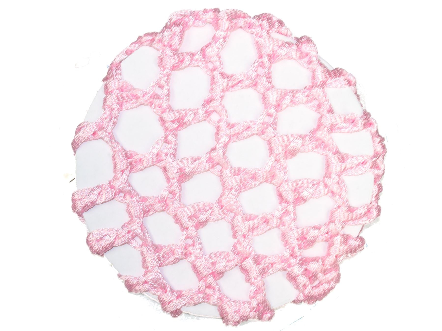 Pink Ribbon Knot Crochet Bun Elasticated Hair Net Ballet Dance Gymnastics