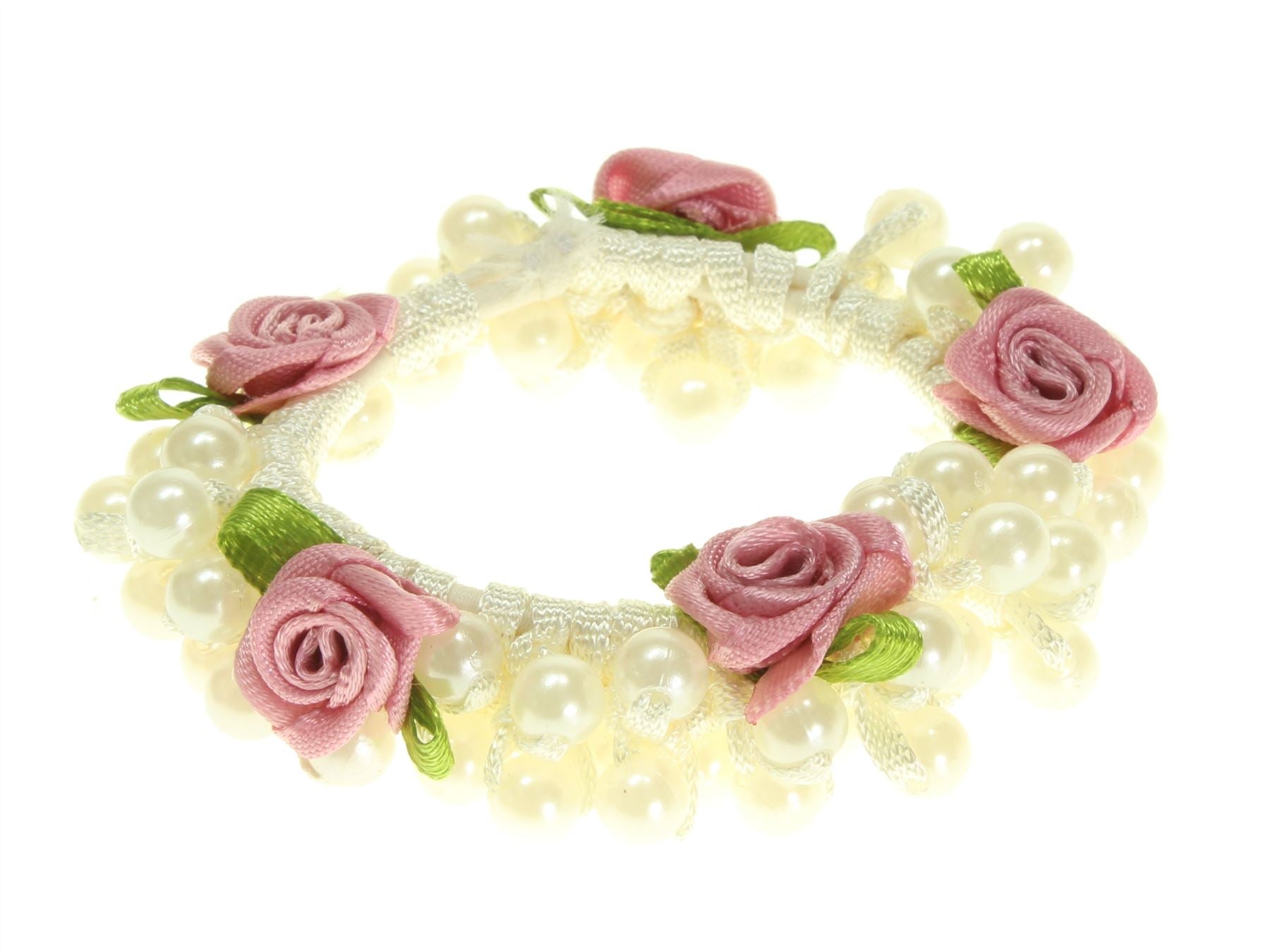 Charming Pink Rosebud Pearl Hair Scrunchie