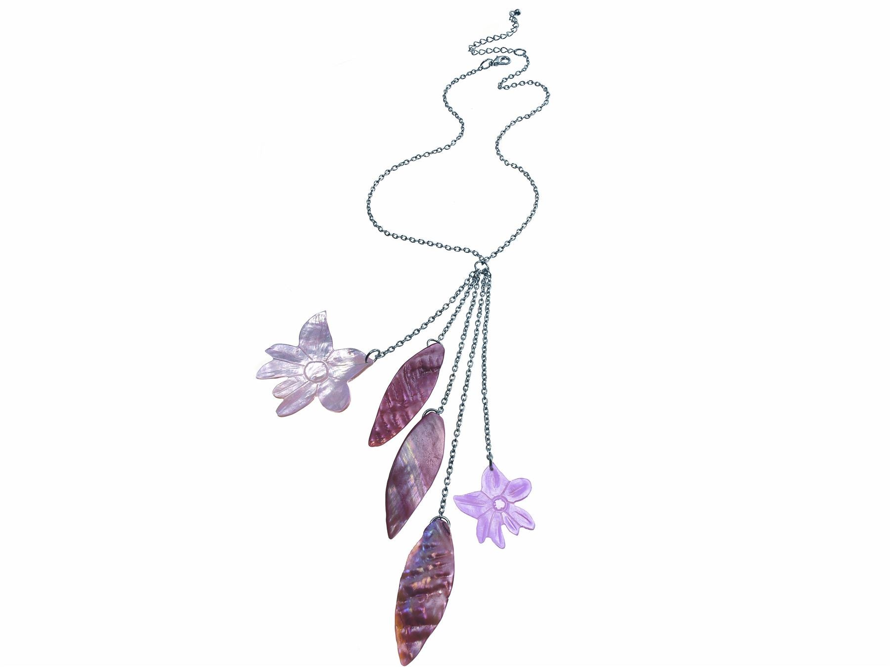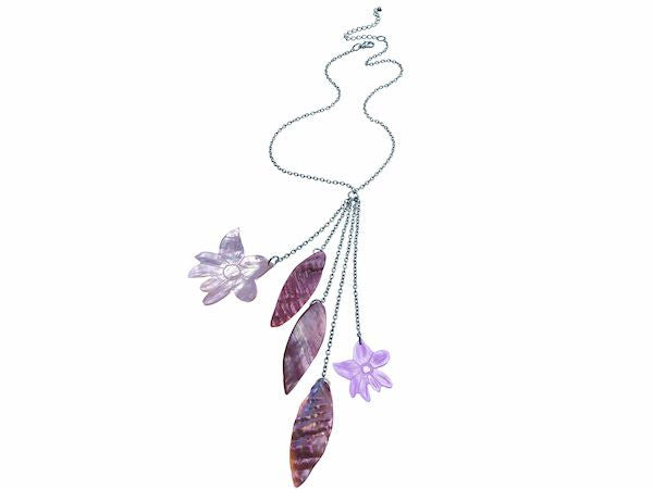 Discover the charm of this stunning pendant necklace, featuring hand-carved kabibe shell flowers from the exquisite Primrose Hill range.