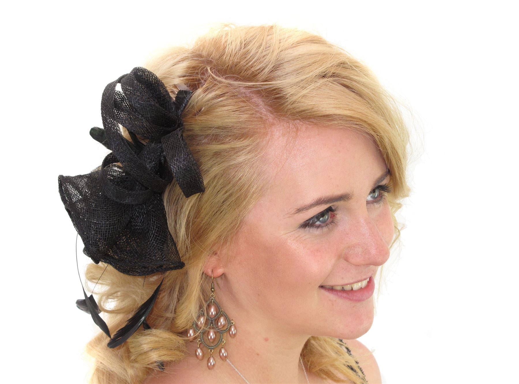 Plain Black Flower Loop Feather Hair Comb Hair Slide FascinatorRaces