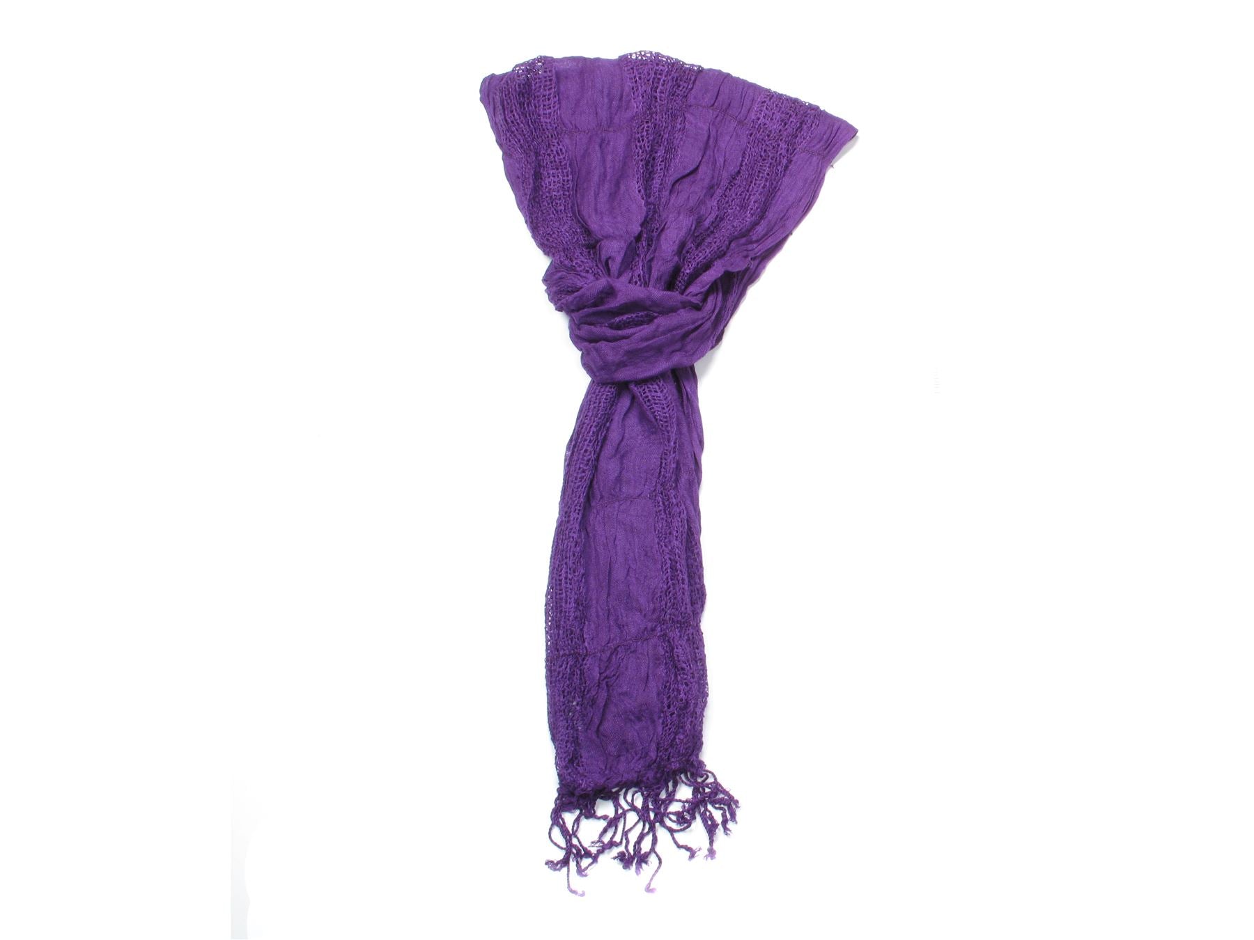 Purple Open Ladder Crinkle Viscose Scarf Shawl Wrap Headscarf Tassels