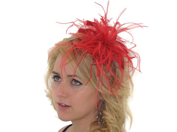 Red Star Flower Feather Hair Comb Slide Fascinator Weddings Races