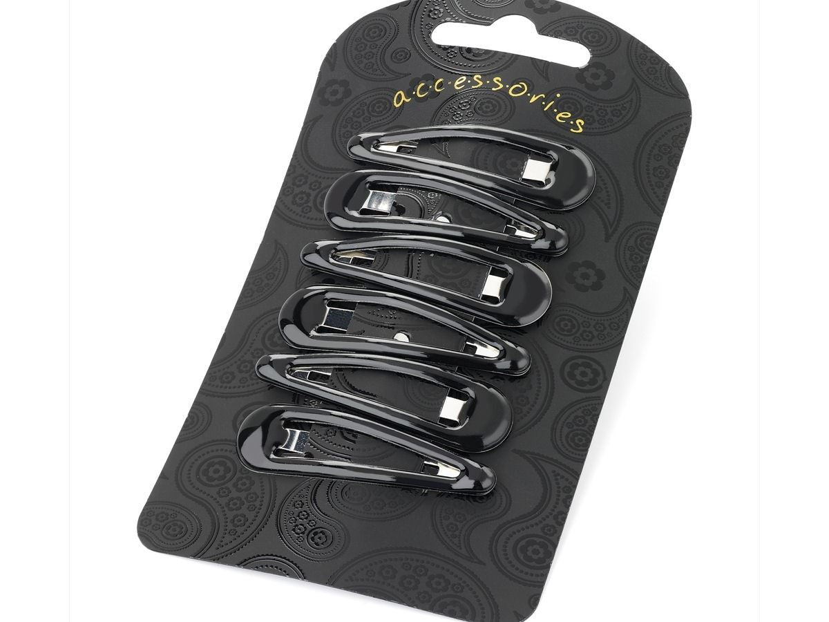 Six 5cm Black Plastic Coated Metal Sleepie Snap Hair Clips Bendies Slides