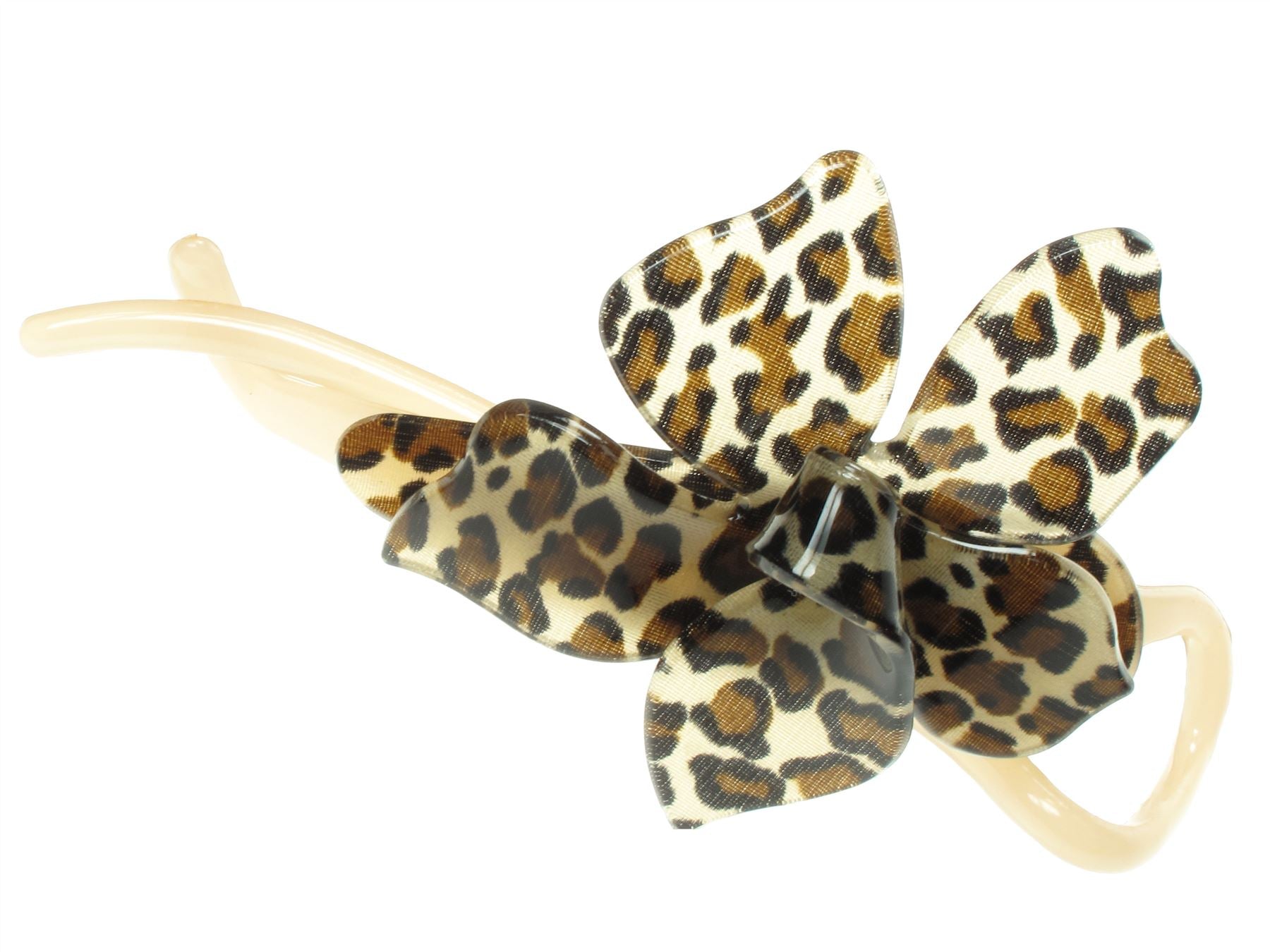 This charming small twist style clamp adds a touch of flair to your hairstyle. With a beautiful floral attachment featuring an animal print, it is designed to elevate your look effortlessly.