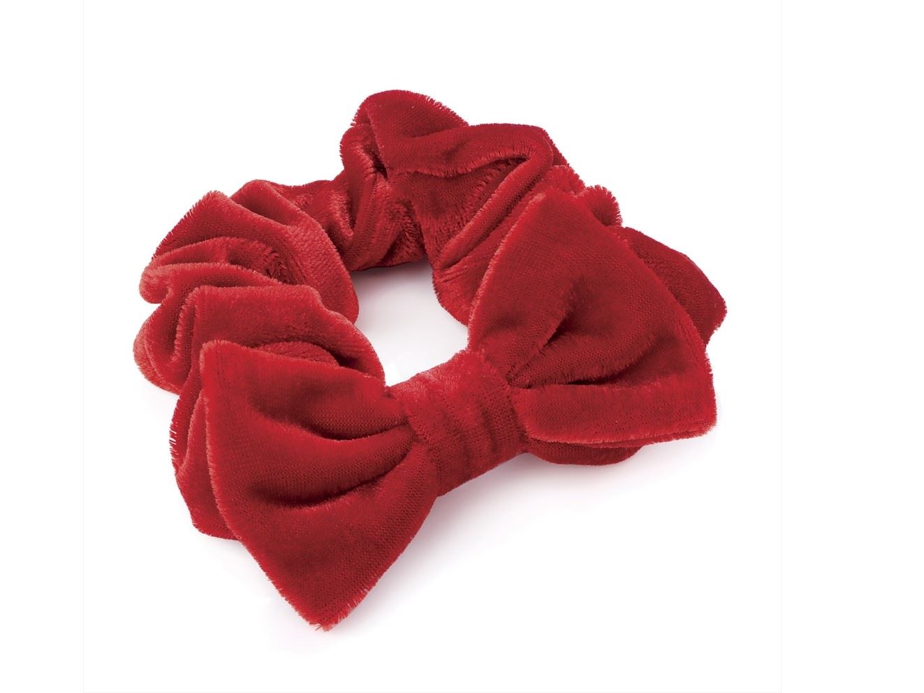 Soft Red Velvet Bow Hair Scrunchie Bobble Elastic Hair Band Accessory