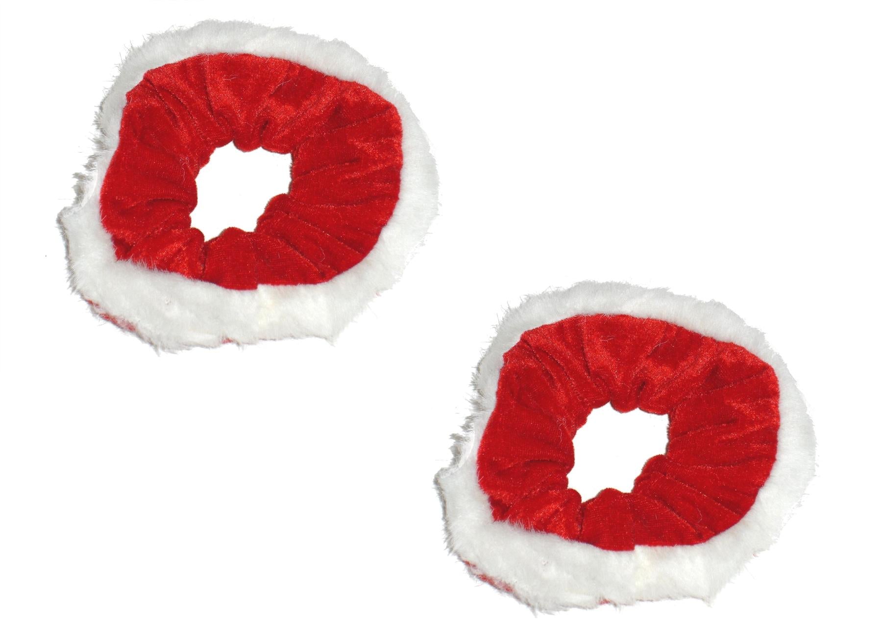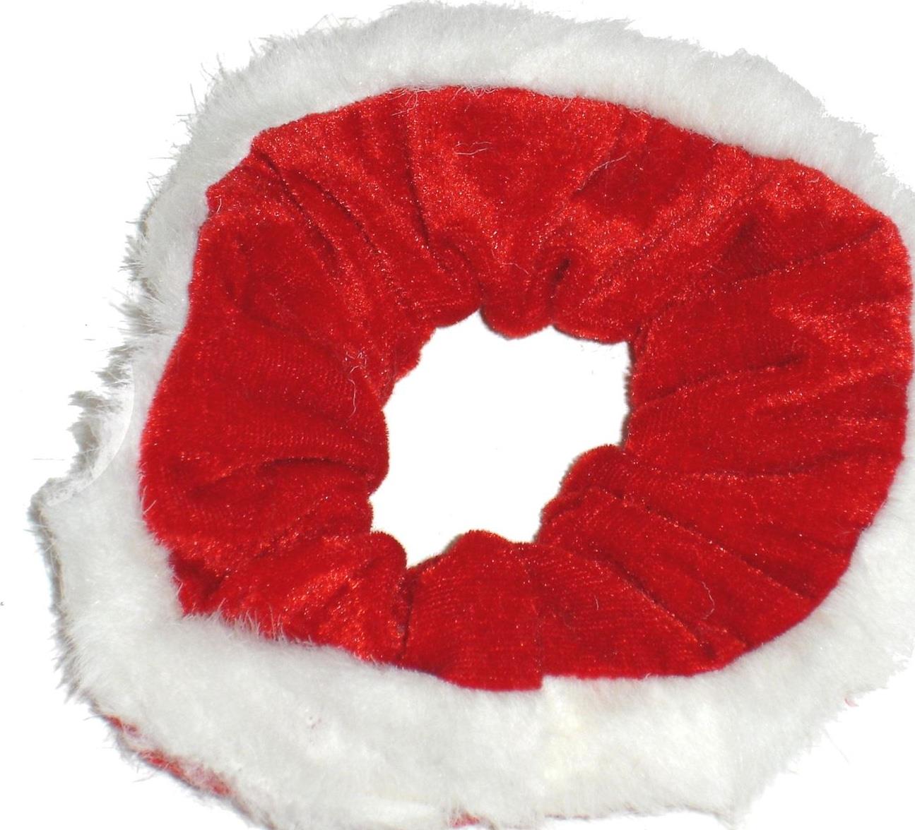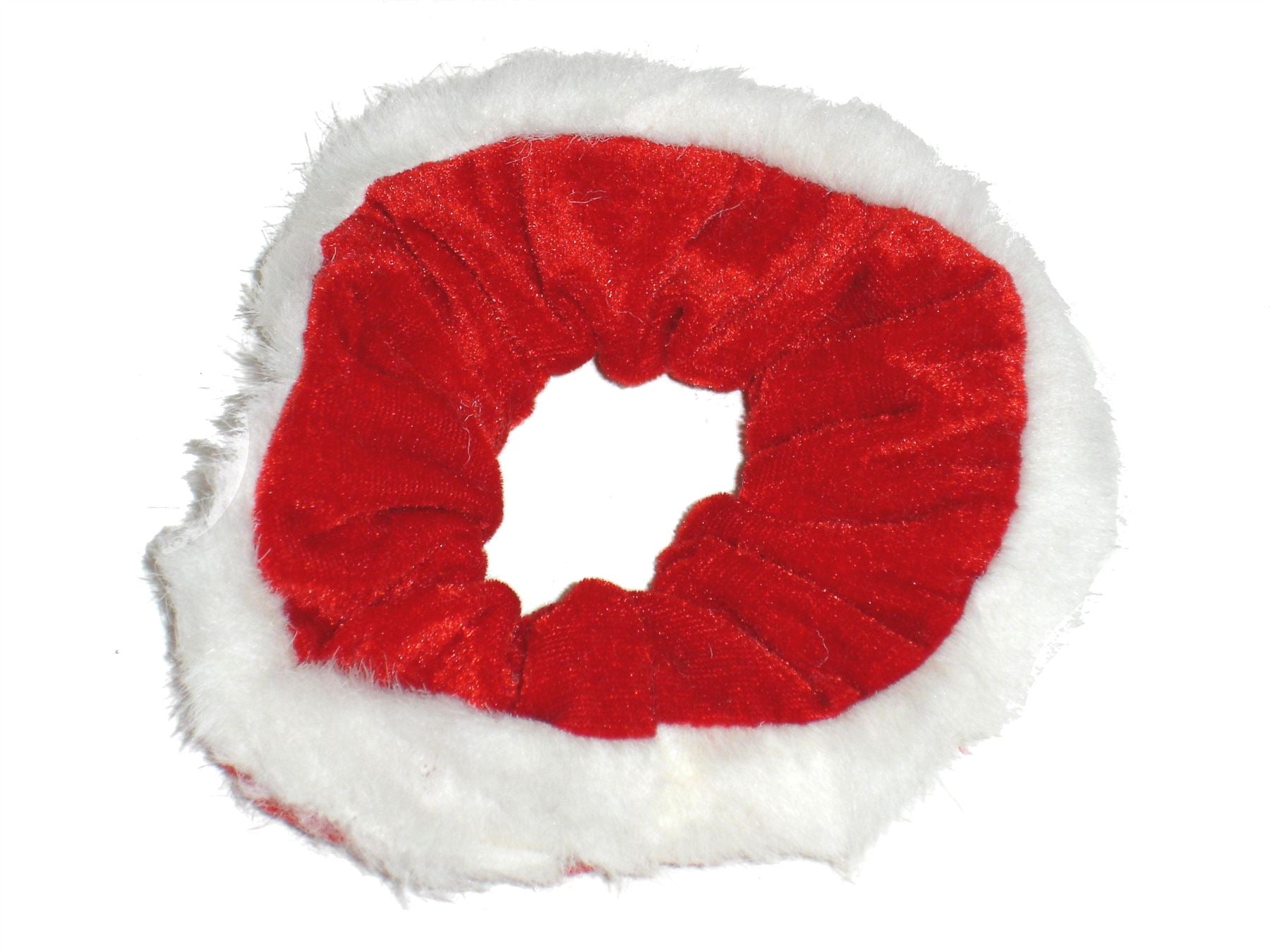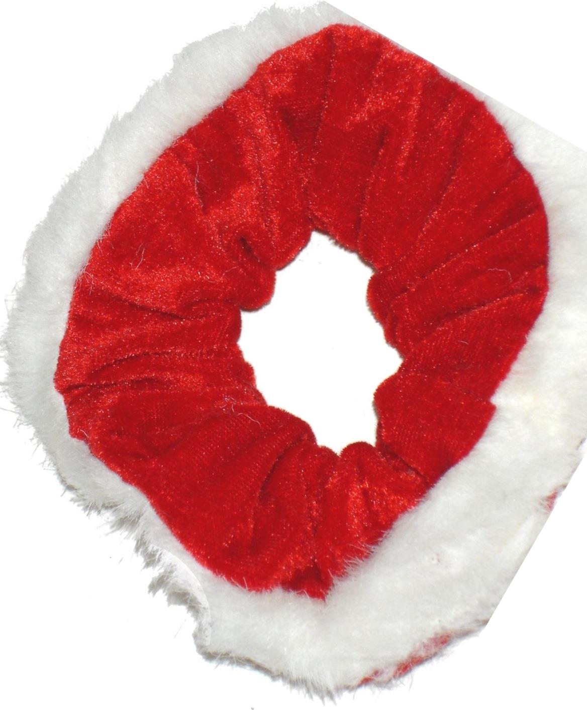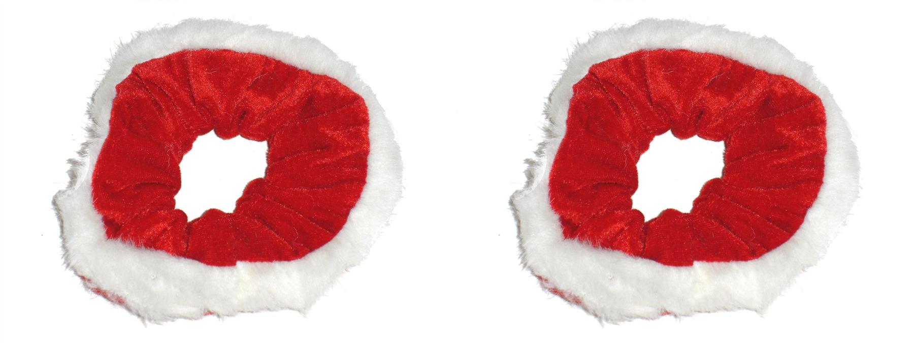 Women Girls Red White Christmas Velvet Fur Scrunchie Hair Bobble Elastic Xmas